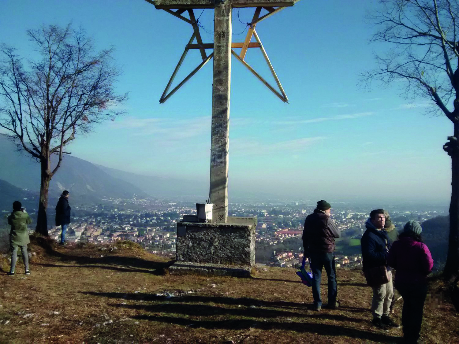 Raggiunta la sommità del colle, si trovano i resti del castello vescovile, costruito nel X secolo e smantellato nel 1514. Il panorama verso la pianura permette di abbracciare con lo sguardo tutto l’orizzonte: da Monte Raga sulla destra fino a Magrè, Schio, Santorso, al Summano e ben oltre. Alle spalle i monti che delimitano la Val Leogra: Enna e Novegno a nord, i vicini Naro, Cengio, Civillina da ovest a sud e, più lontano, verso ovest, il Pasubio, il Sengio Alto e il Carega.